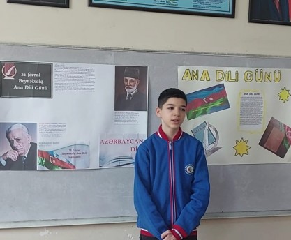 21 Fevral Beynəlxalq Ana Dili Günü münasibətilə 21.02.2023-cü il tarixində Azərbaycan dili dərsində (müəllim: Xəyalə Mədətli Nadir qızı) VIIIb və VIIIç sinif şagirdləri təqdimat hazırladılar. Dil hər bir millətin maddi və mənəvi irsini qoruyan və inkişaf etdirən ən mühüm vasitədir, buna görə də şagirdlərimiz, ilk növbədə , Ana dili Gününün tarixi barədə məlumat verdilər, daha sonra isə Ana dilinin insanın mənəvi aləminin zənginləşməsində, dünyagörüşünün genişlənməsində, mükəmməl təhsil almasında, öz soydaşları ilə ünsiyyət qurmasında mühüm rol oynayan əsas vasitə kimi əhəmiyyətindən danışdılar. Şagirdlər ədiblərimizin dil haqqında fikirləri ilə davam etdilər. Xəlil Rza Ulutürkün “Ana dilim”, Tofiq Bayramın “Ana dilim”, Məhəmmədhüseyn Şəhriyarın “Türkün dili”,Bəxtiyar Vahabzadənin “Ana dili” şeiri şagirdlərimizin ifasında səsləndi.